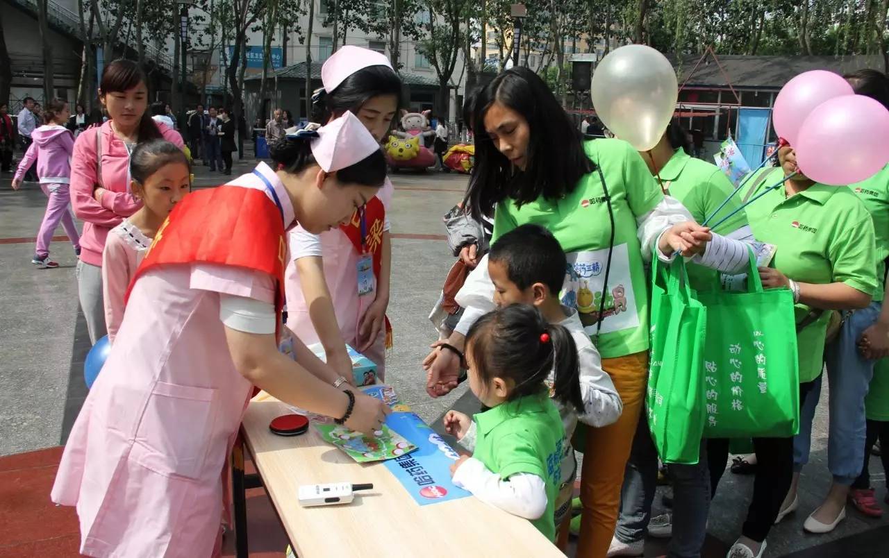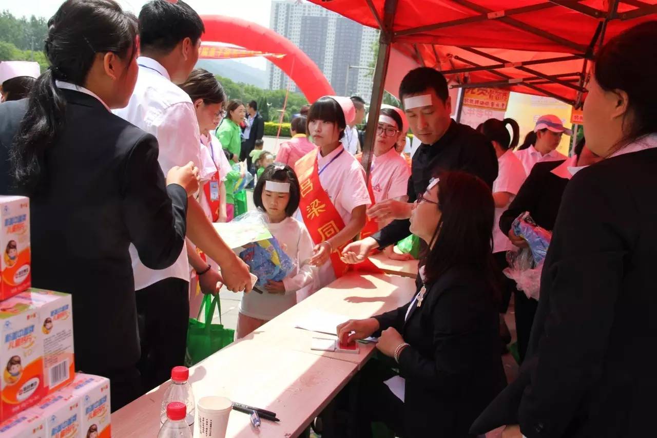 孩子們免費(fèi)品嘗藍(lán)瓶鋅鈣